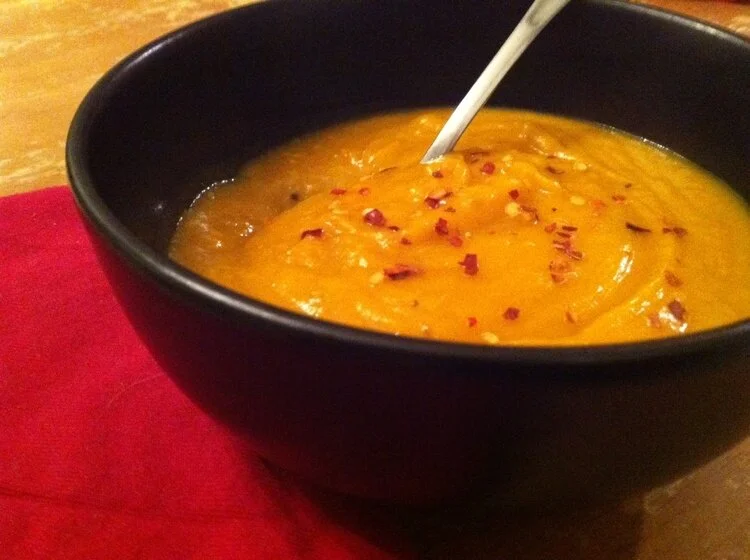 Keeping in-line with my recent soup fetish, I decided to blend this baby up into a creamy concoction. What I ended with is the easiest fall soup imaginable.
